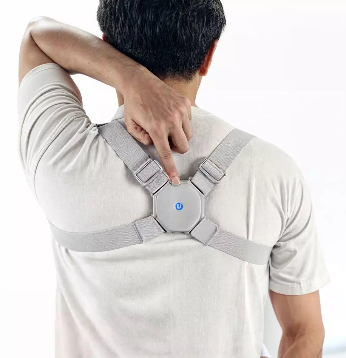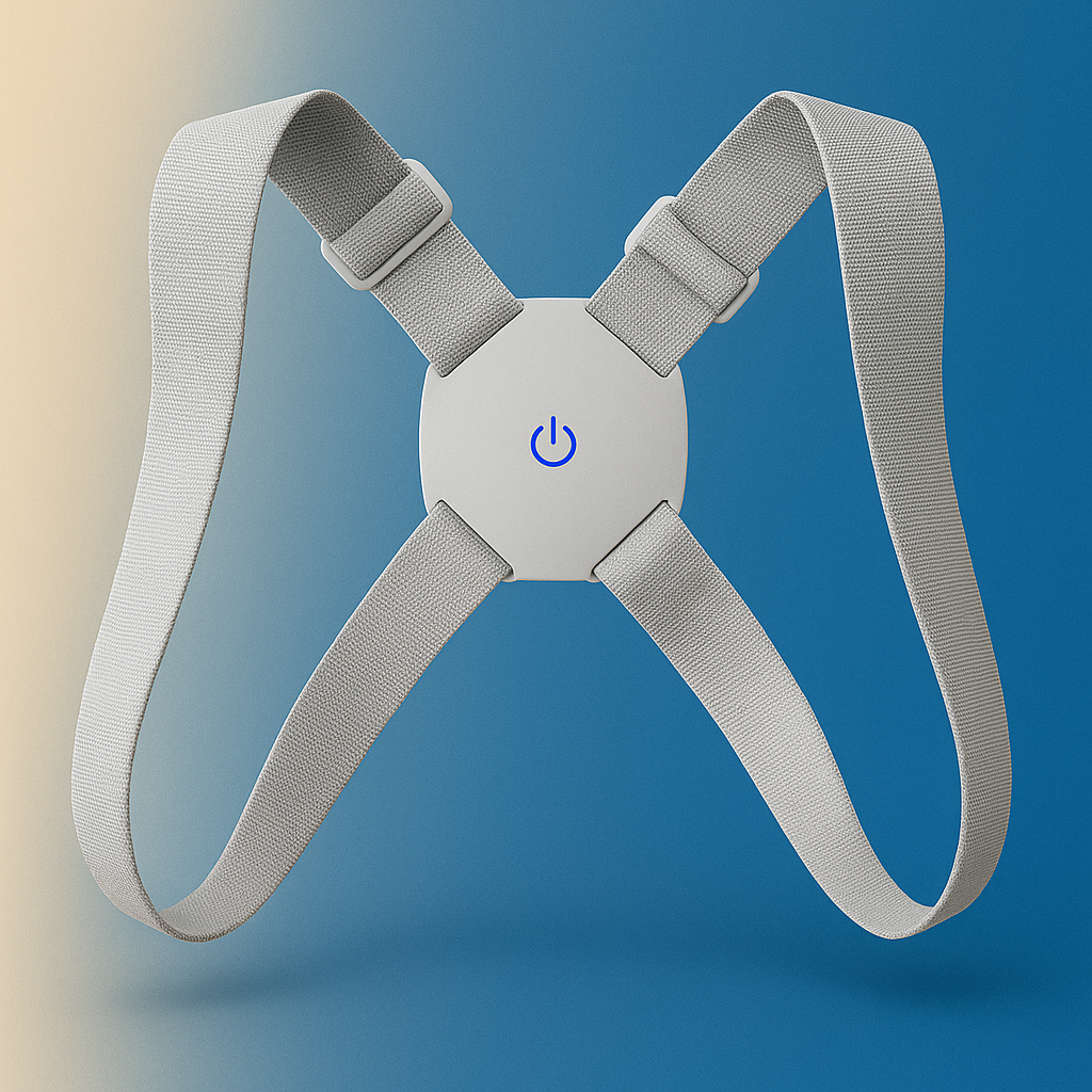Recupera tu postura natural con un sensor inteligente que vibra cuando te encorvas — cómodo, discreto y recargable.